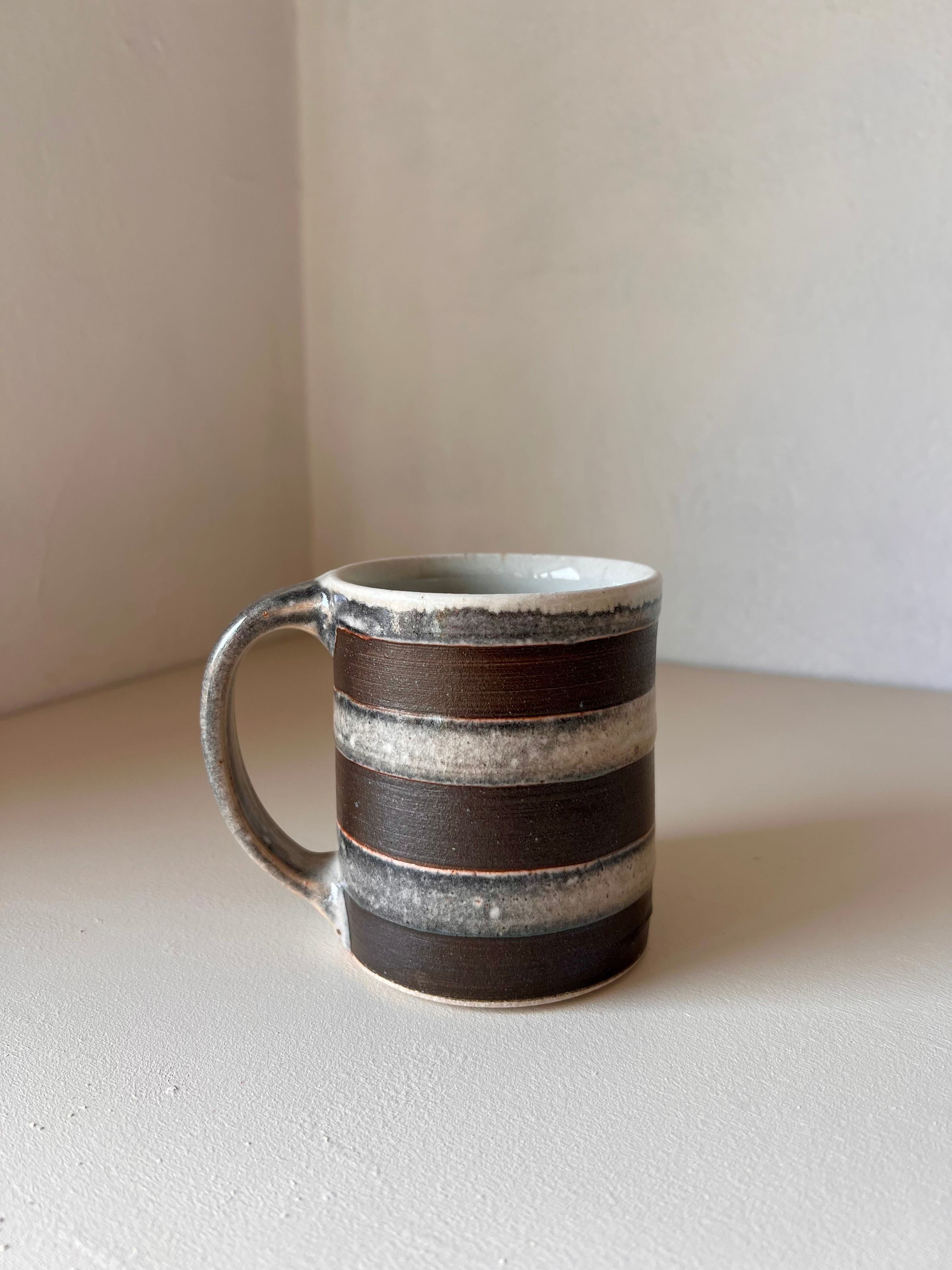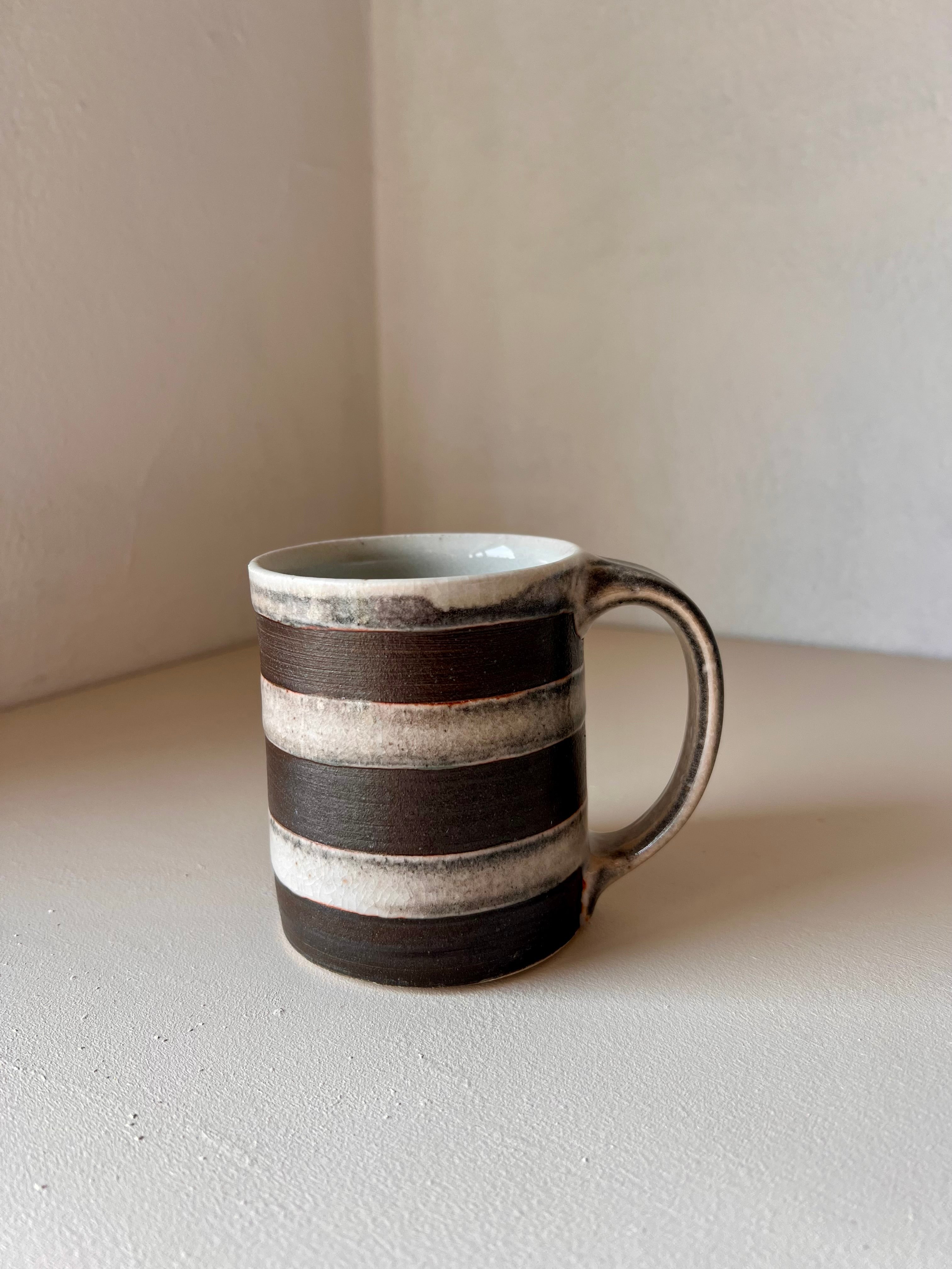 Wheel thrown stoneware, decorated with carving and slip. Finished with a Shino glaze. Cone 10, gas reduction fired.
