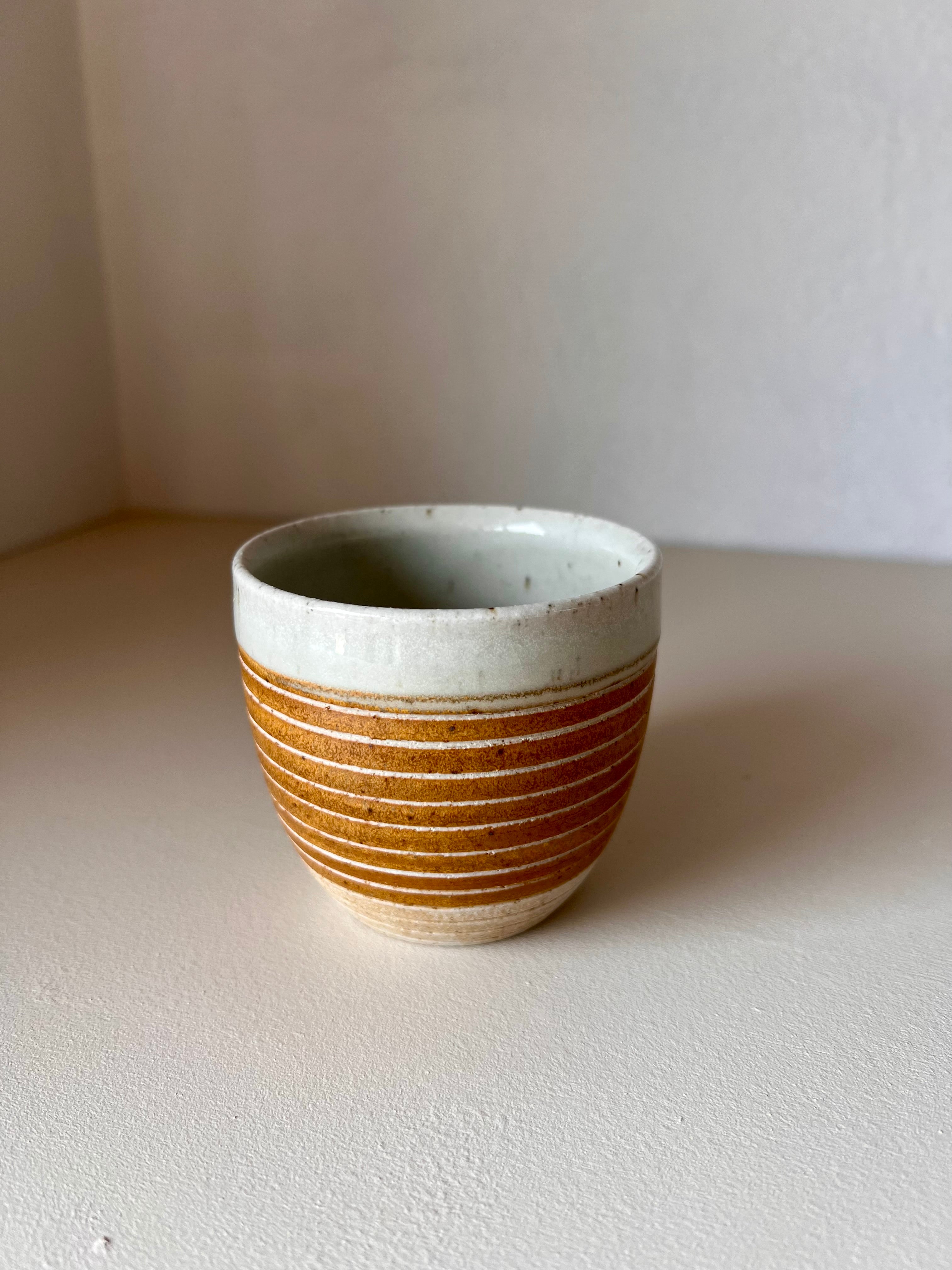 Wheel thrown stoneware, decorated with carving and slip. Finished with a glossy white interior. Cone 10, gas reduction fired.