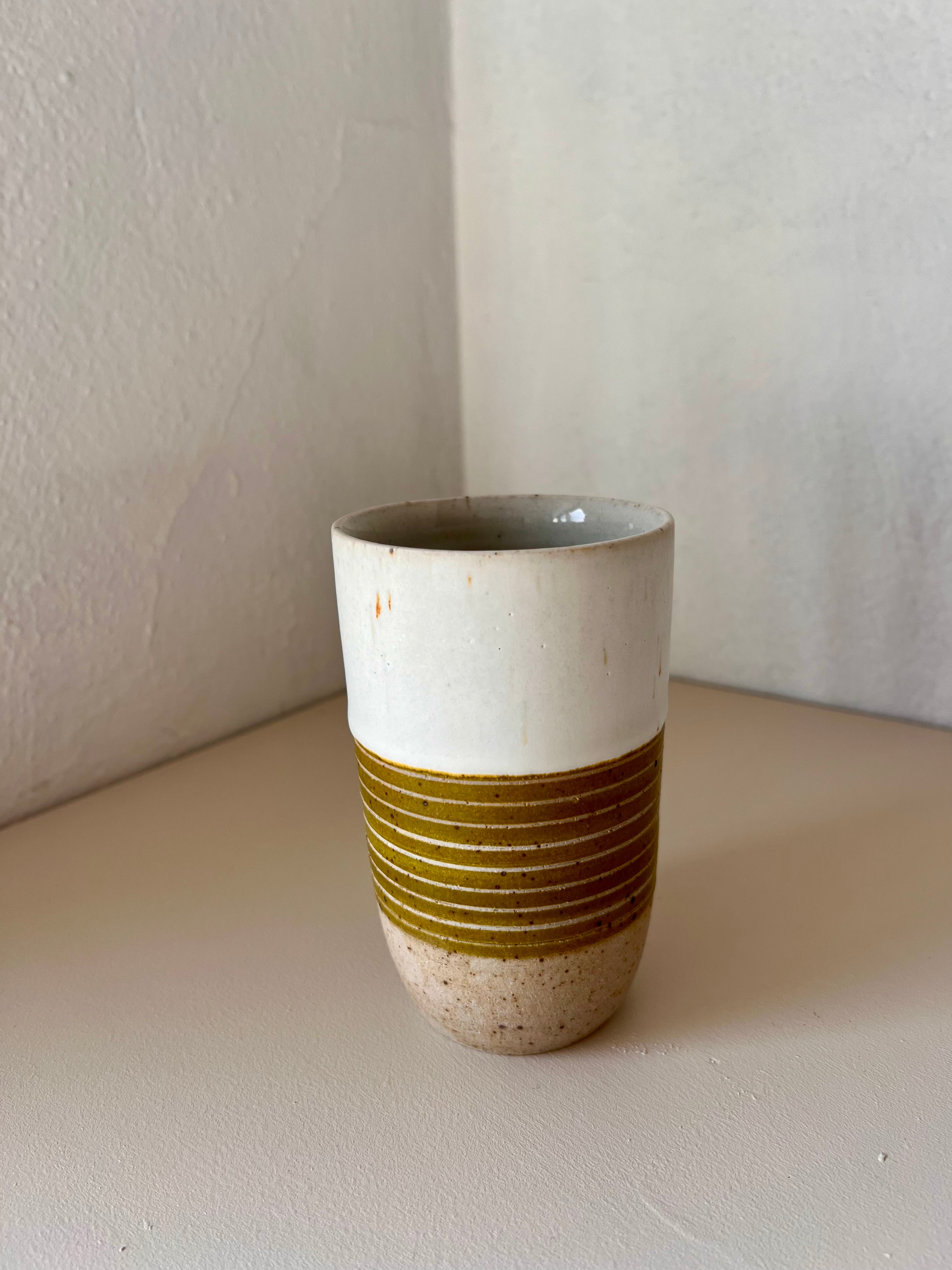 Wheel thrown stoneware, decorated with carving and slip. Finished with a satin white glaze exterior and glossy white interior. Cone 10, gas reduction fired.