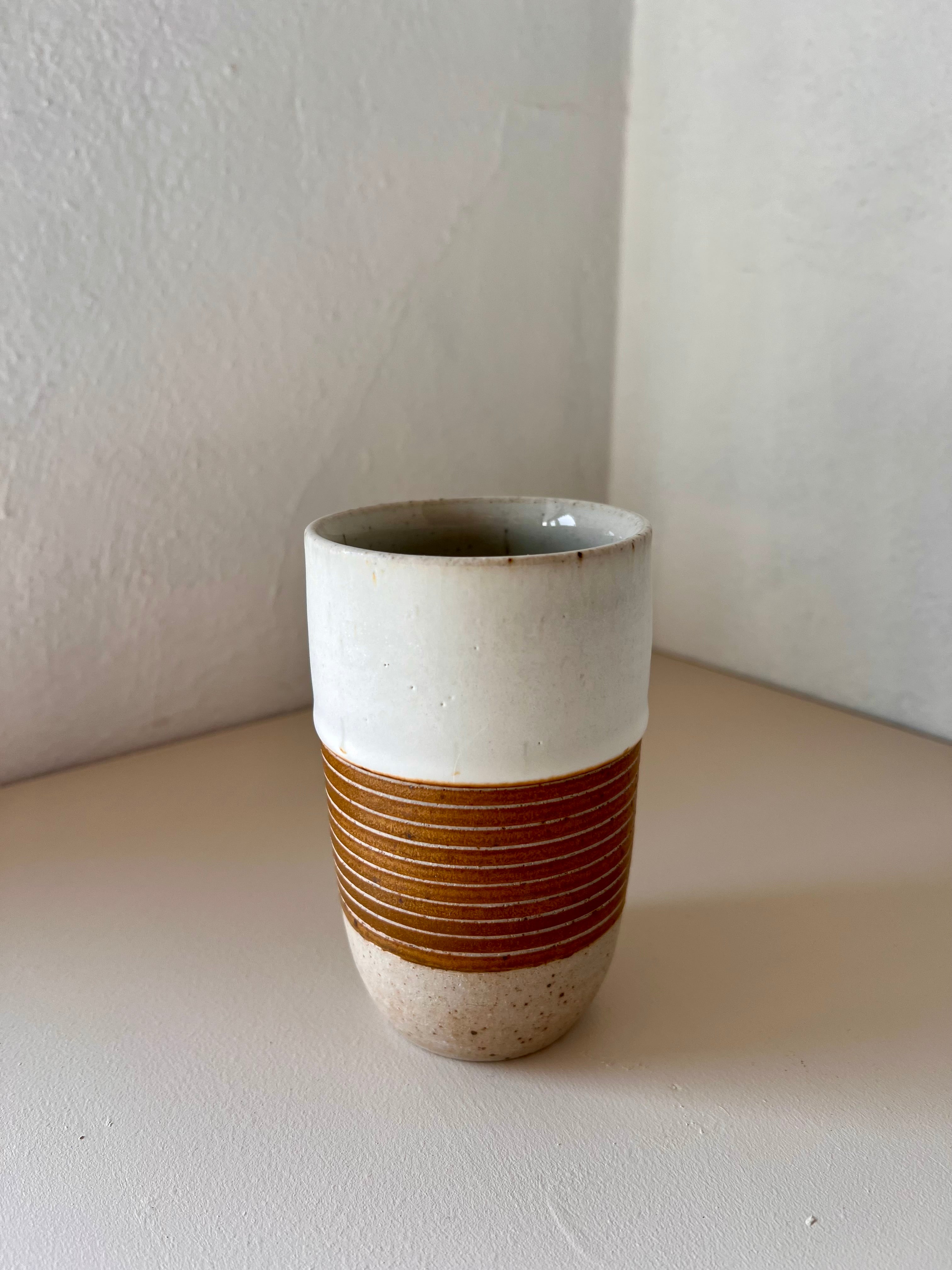 Tall Cup in Ochre with Carving