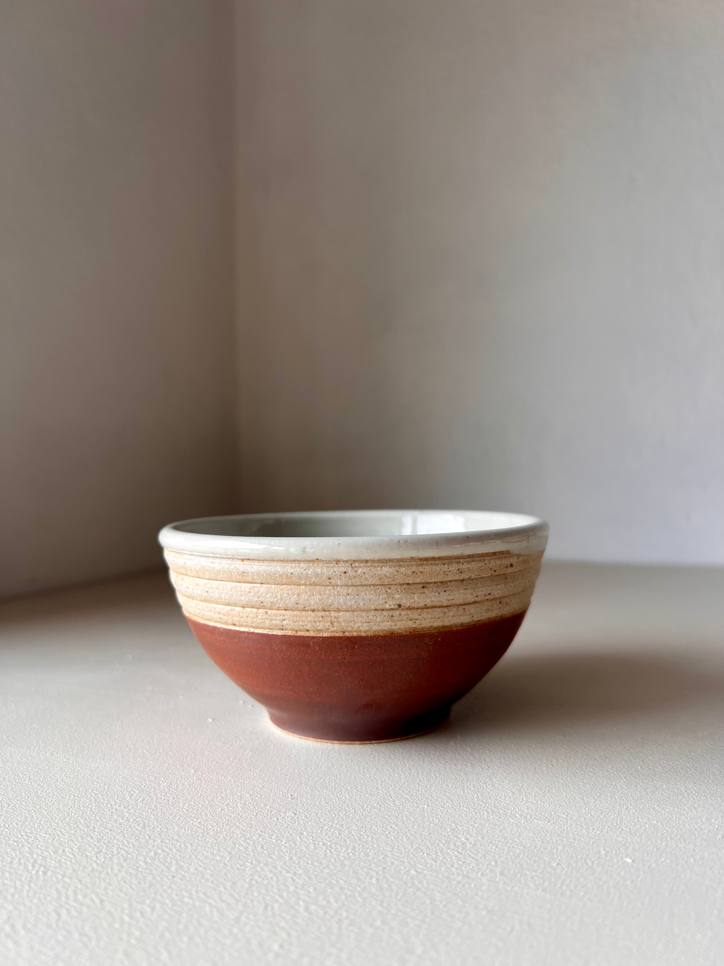 Wheel thrown stoneware, decorated with carving and slip. Finished with a gloss white glaze interior. Cone 10, gas reduction fired.