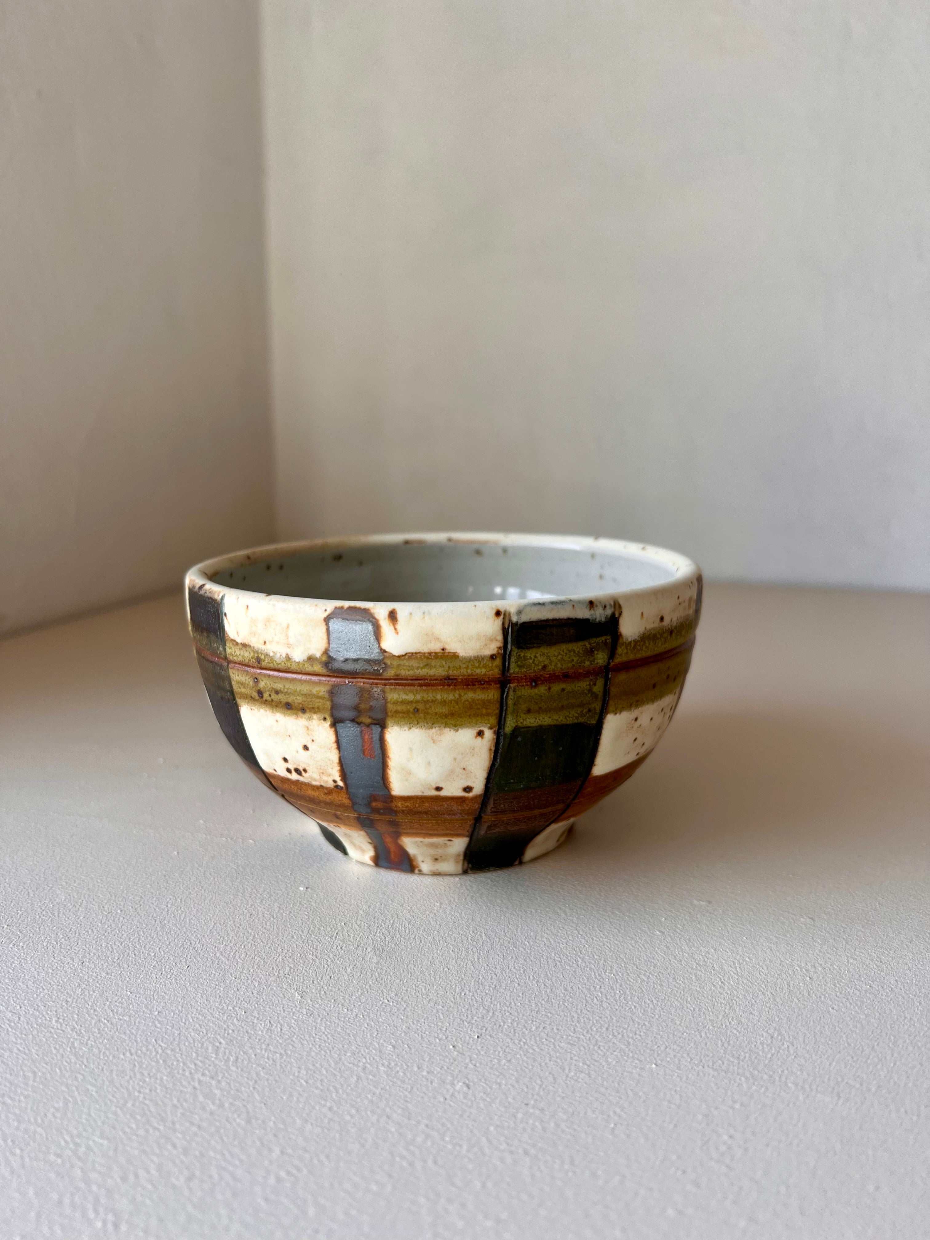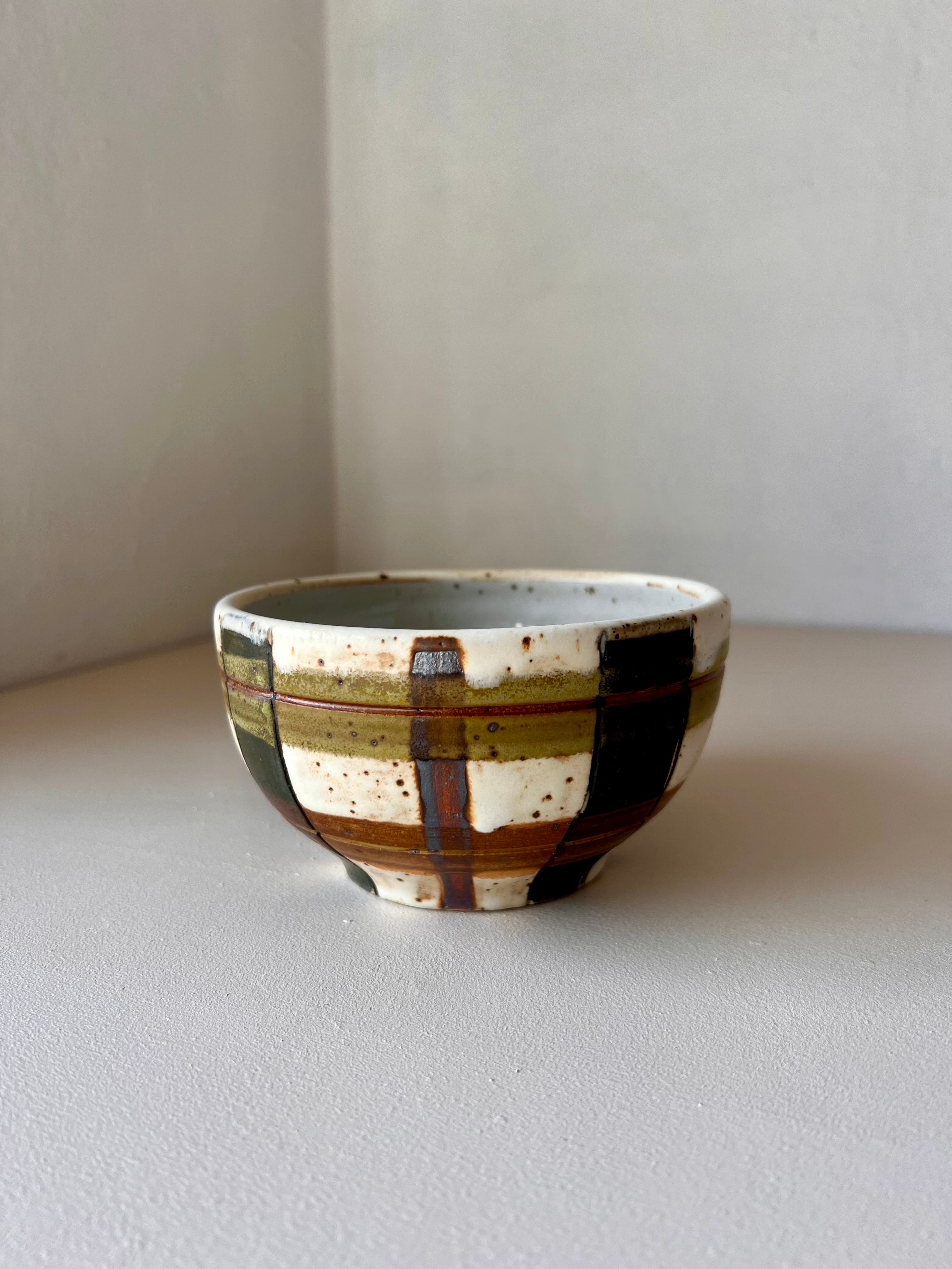 Wheel thrown stoneware, decorated with carving and slip. Finished with a gloss white glaze interior. Cone 10, gas reduction fired.