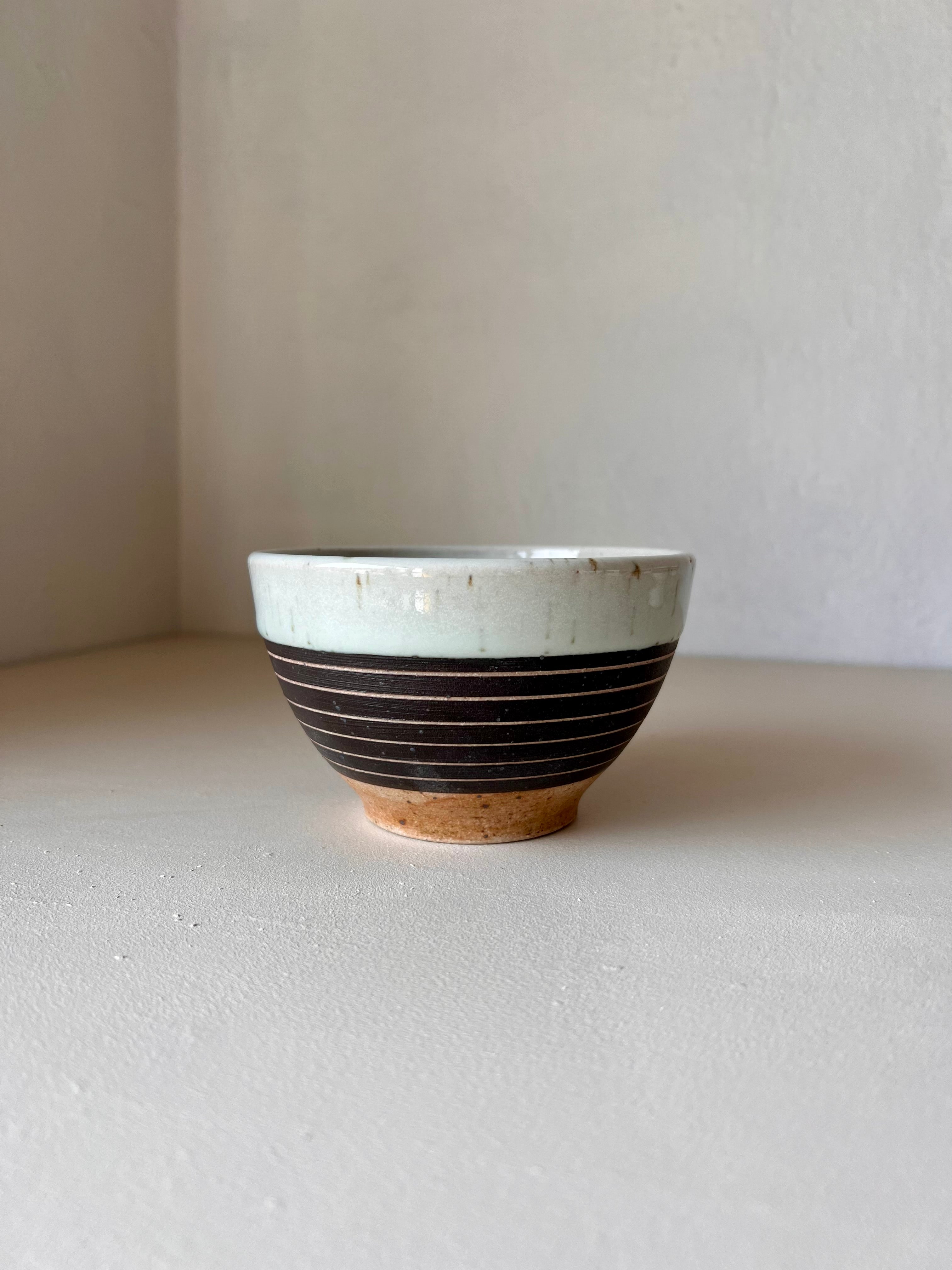 Wheel thrown stoneware, decorated with carving and slip. Finished with a gloss white glaze. Cone 10, gas reduction fired.
