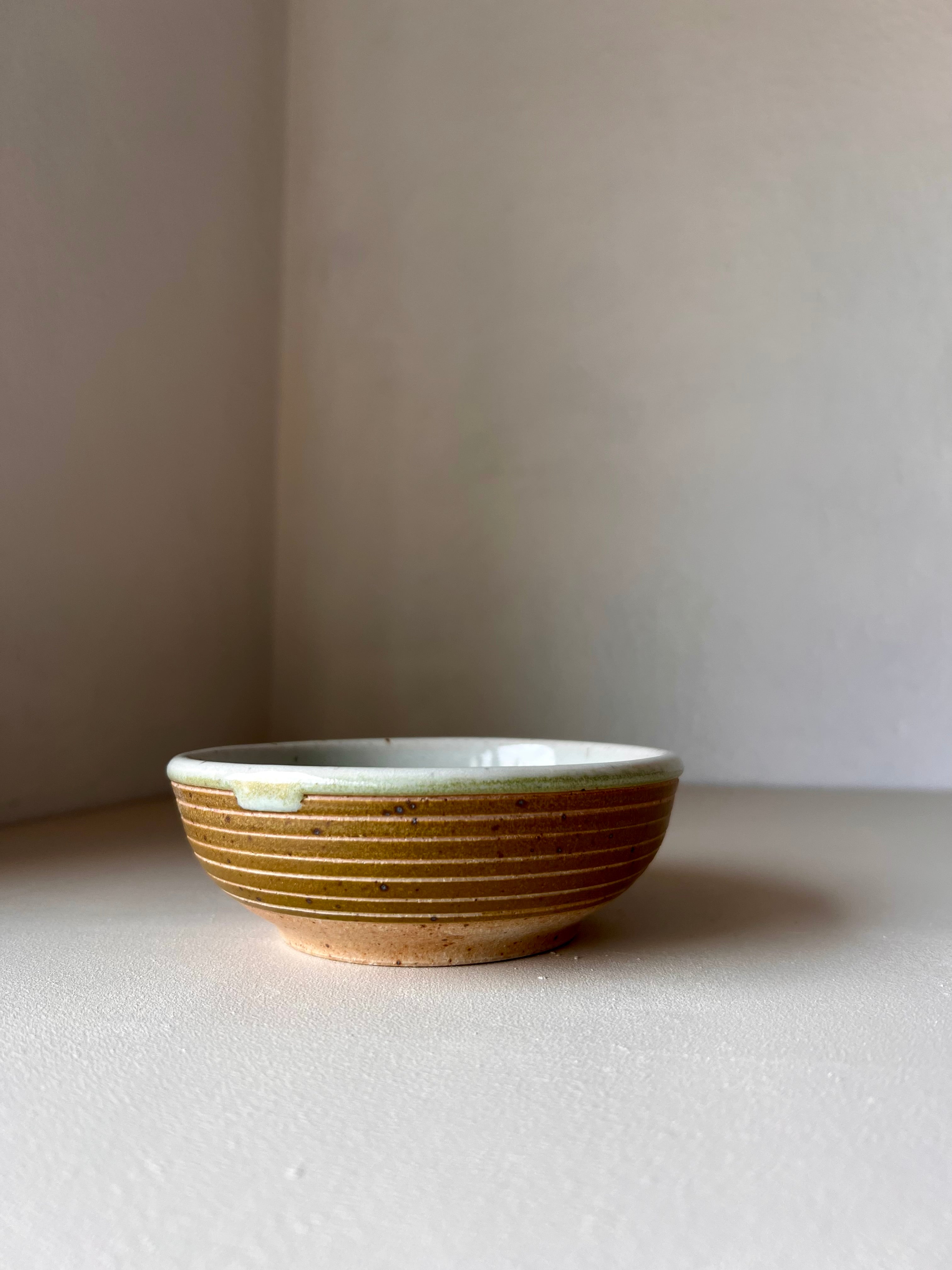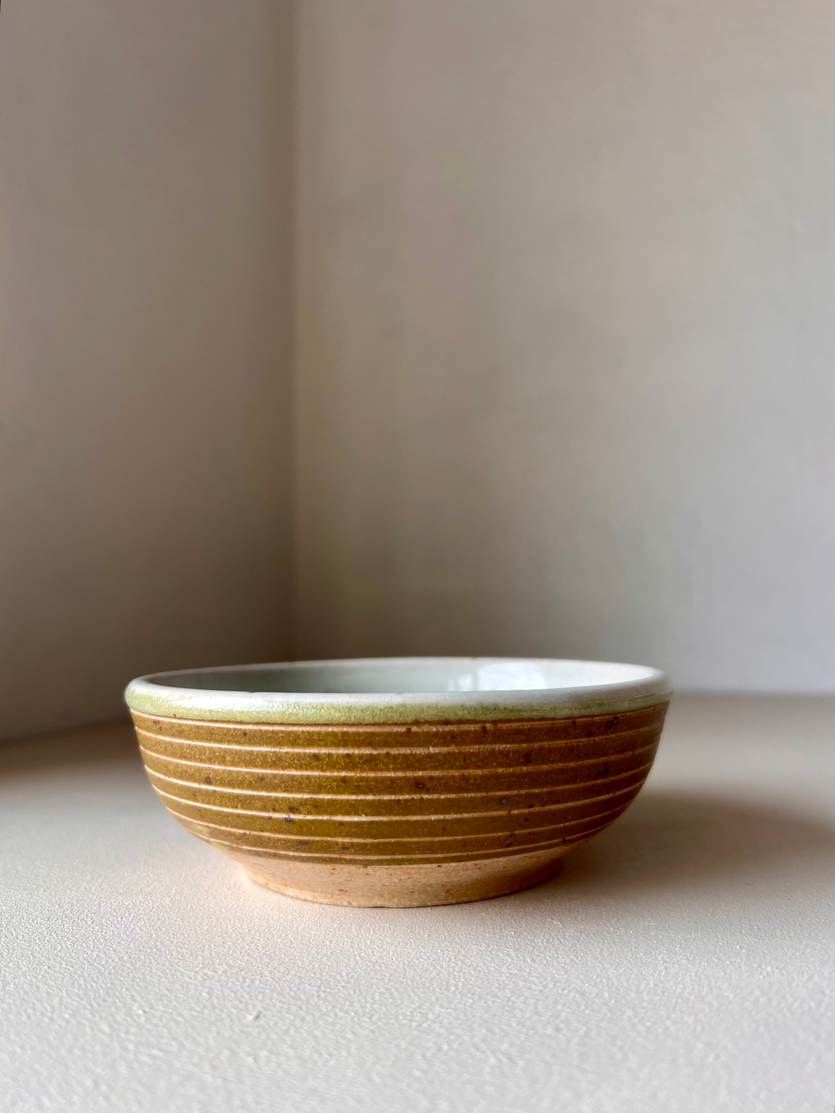 Wheel thrown stoneware, decorated with carving and slip. Finished with a gloss white glaze interior. Cone 10, gas reduction fired.