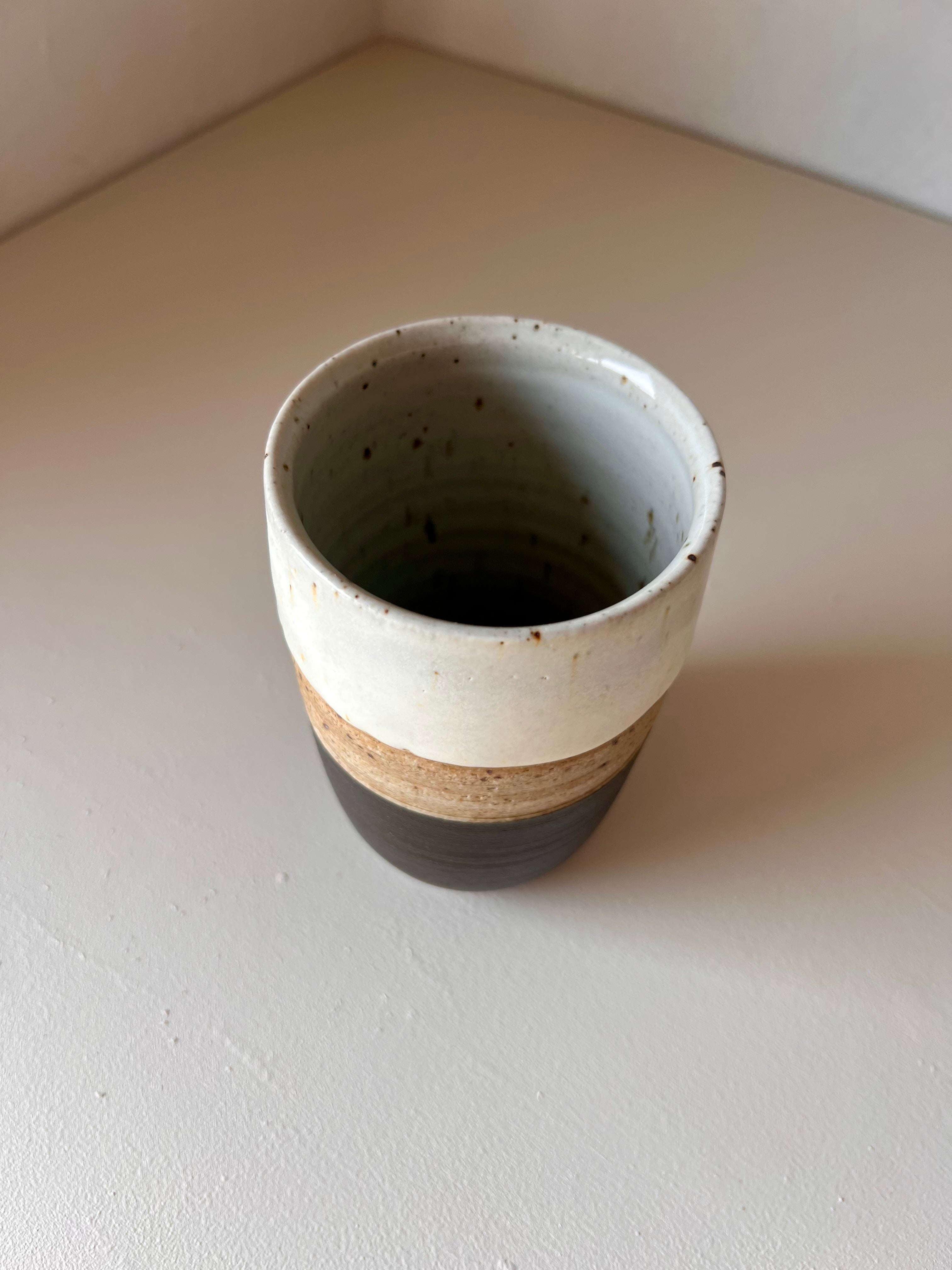 Wheel thrown stoneware, decorated with carving and slip. Finished with a satin matte glaze exterior and glossy white interior. Cone 10, gas reduction fired.